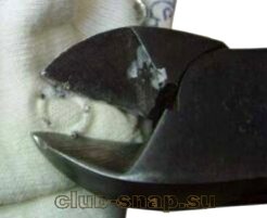 всё тем же надежным бокорезом. Со стороны внутренней части кнопки щёчками бокореза аккуратно сдавливаем края под кнопкой, одно движение и готово.